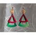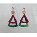 Christmas tree earrings feature layered triangles of red and green topped with a star. Earrings measure 2-1/8" long from top of ball post.