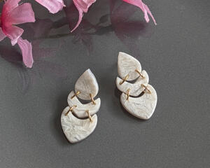 White Tiered Polymer Clay Earrings