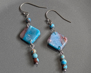 Faux Stone Polymer Clay Earrings with Genuine Jasper Beads
