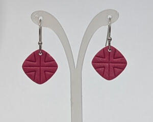 Deep Rose Square Earrings with Celtic Cross Imprint